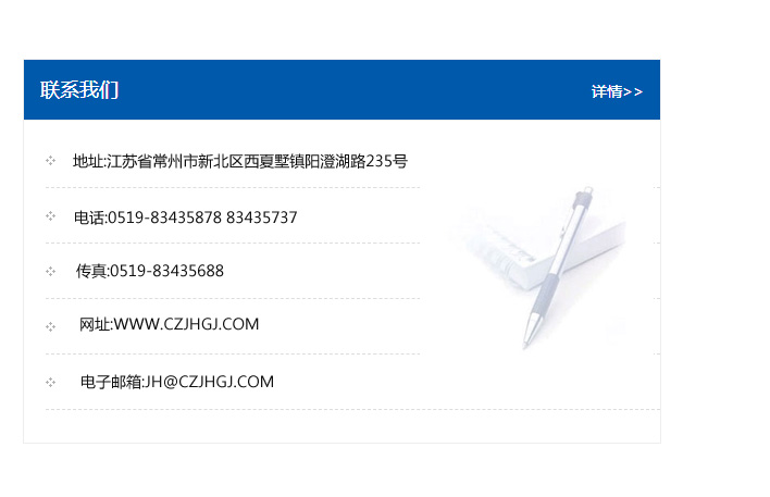 地址:常州市新北區友邦商務大廈1幢16、17層  電話:0519-85101652  傳真:0519-85112595  郵編:213022  網址:www_cz-jiayue_cn.yikaozs.com  郵箱:xiajifengaa@163.com